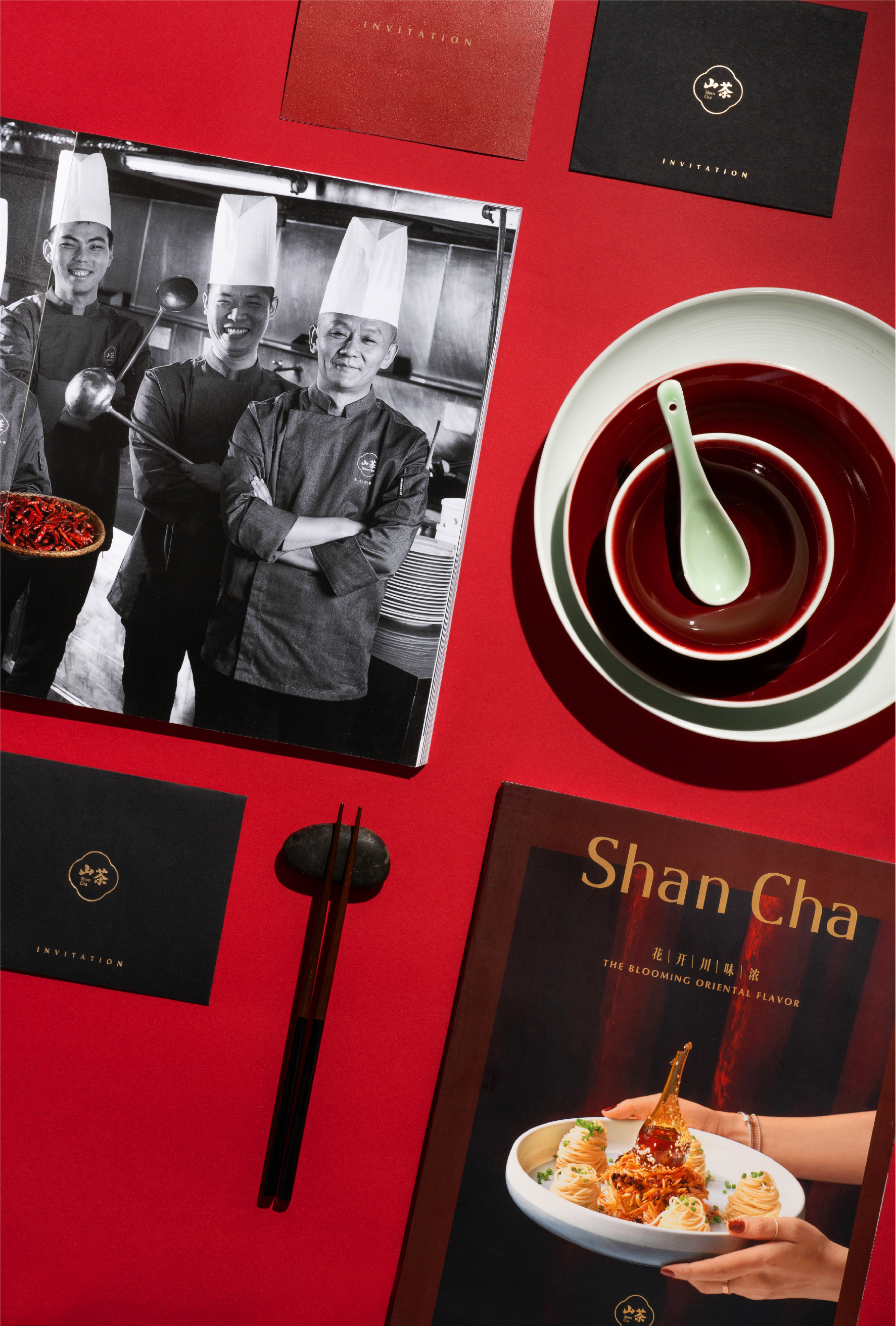 山茶的设计哲学遵循东方美学(复古)+自由去法(当代)+拙雅节制(极简)的三项杂糅,创作出融会贯通,致美致雅的川味气韵。为川味入驻沪上,注入最蓬勃优雅的血液。同时,我们为山茶创作了一系列茶花元素,东方色彩与柔润花型散发出别具一格的魅力。