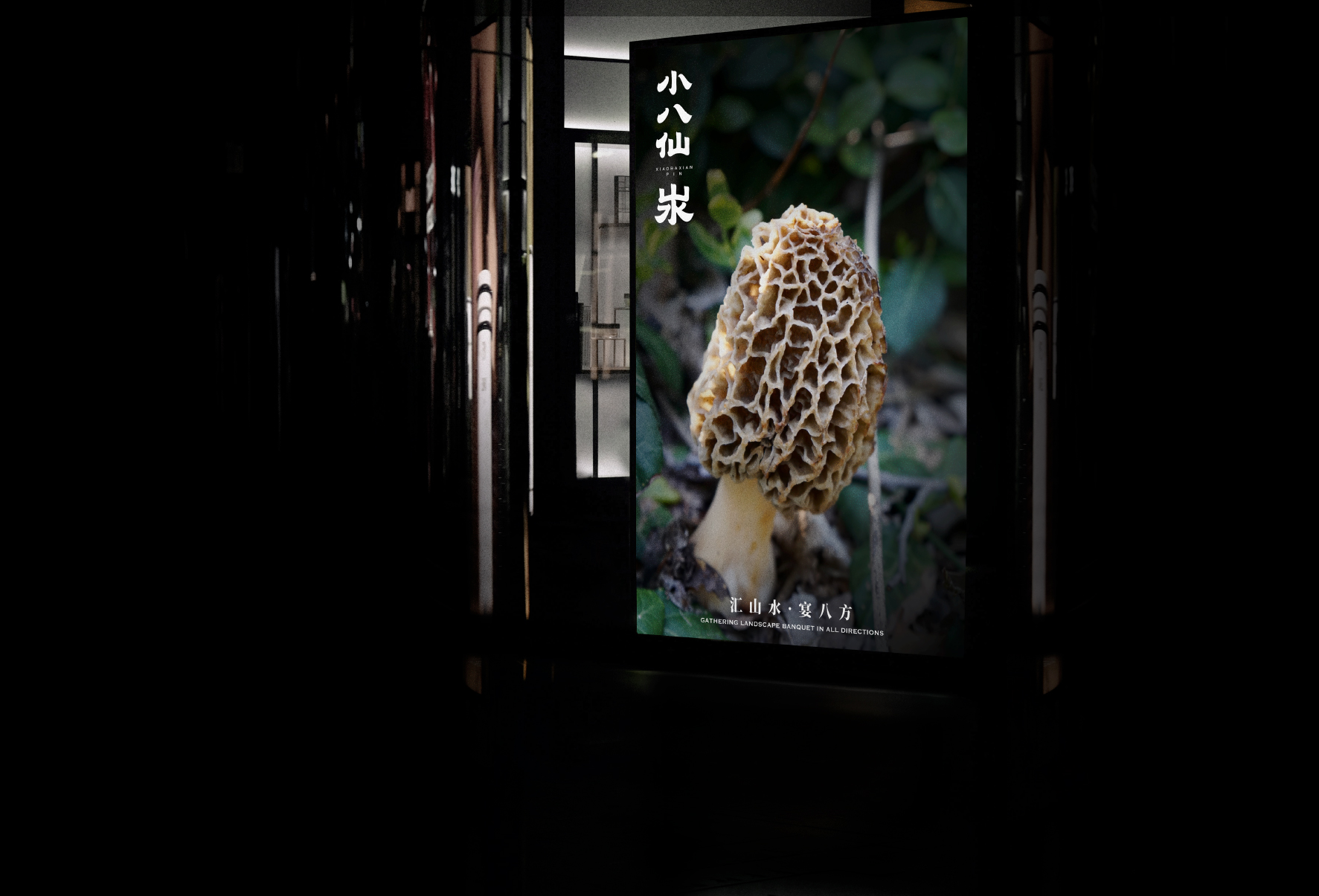 1990年,小八仙品牌正式成立,以坚持鲜活品质,重视服务体验,独特地方风味为基础,配合主打宴请的切入点,开启了品牌的发展之路,31年的时间,小八仙积累了相当丰富的客户群体。但时间推移,品牌方在运营时的不同尝试,导致品牌形象不聚焦,陈旧的视觉,也无法传递品牌本身想要塑造的精致川菜品牌形象,经过为期1个月的前期调研工作,我们为品牌重新聚焦到以自身最擅长的「宴」为核心的品牌定位上,以「精致日常小聚宴/重要事务宴请」为重点消费场景,进行产品/体验流程与细节/视觉等多维度的品牌升级工作。作为经营31年的品牌,时间冲洗的典雅韵味与流转沉淀的信任感,是我们在进行视觉表达时想要传递给消费者的核心信息,标志字体设的计通过现代和经典书法笔触融合,以笔画粗细与笔锋走势,构筑厚重且典雅的视觉感受,同时赋予中式艺术性。每个字体均基于其中轴对称,两侧外扩,稳定结构的同时给人以舒展、大气的感受。